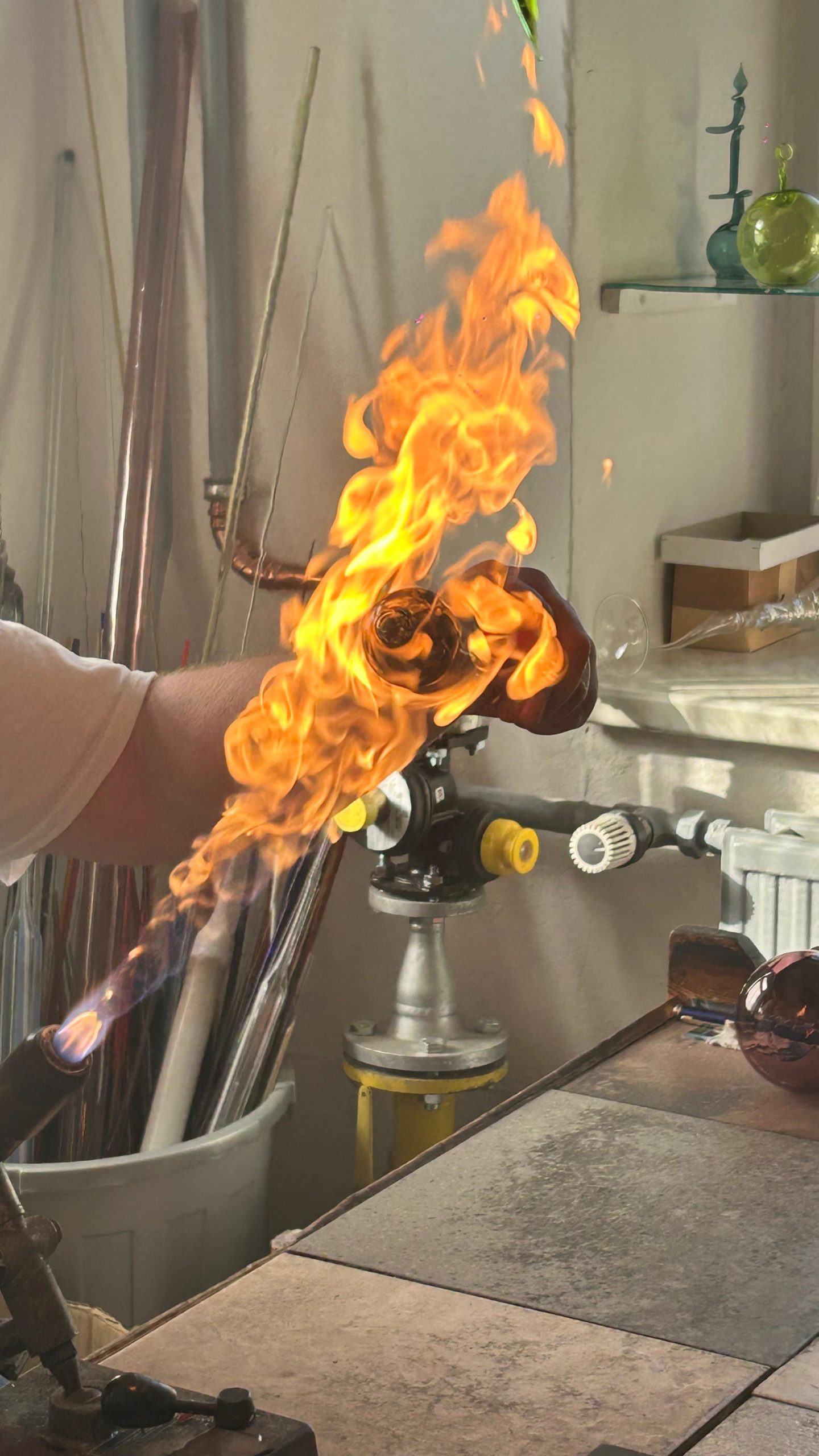 Das alte Handwerk eines Glasbläsers sollte uns zum Ergebnis führen. Herr Marcel Hellbach aus Brand-Erbisdorf, erwartete uns am 08.11.2025 um 10:00 Uhr in seiner Werkstatt. Herr Hellbach erzählte uns sehr viel über seine Arbeit im Familienbetrieb. Am Ende der Veranstaltung hatte jeder von uns eine Glaskugel aufgeblasen und zum Ergebnis, eine bunte Mischung von Weihnachtskugeln herzustellen,